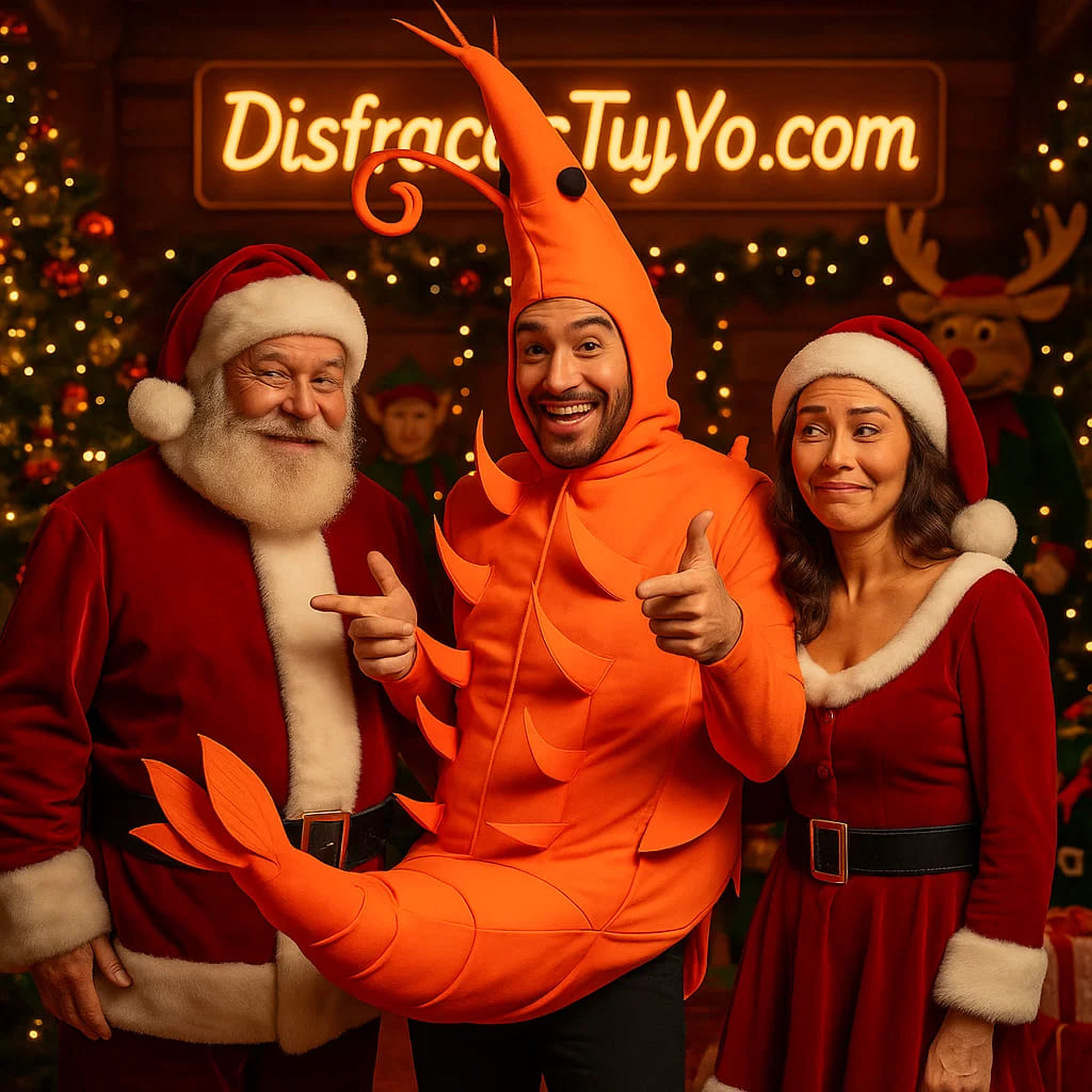 Este tipo de disfraces son la base de cualquier ambientación navideña. Pero si quieres pasar al siguiente nivel de diversión… te falta algo. O mejor dicho: te falta una gamba gigante.