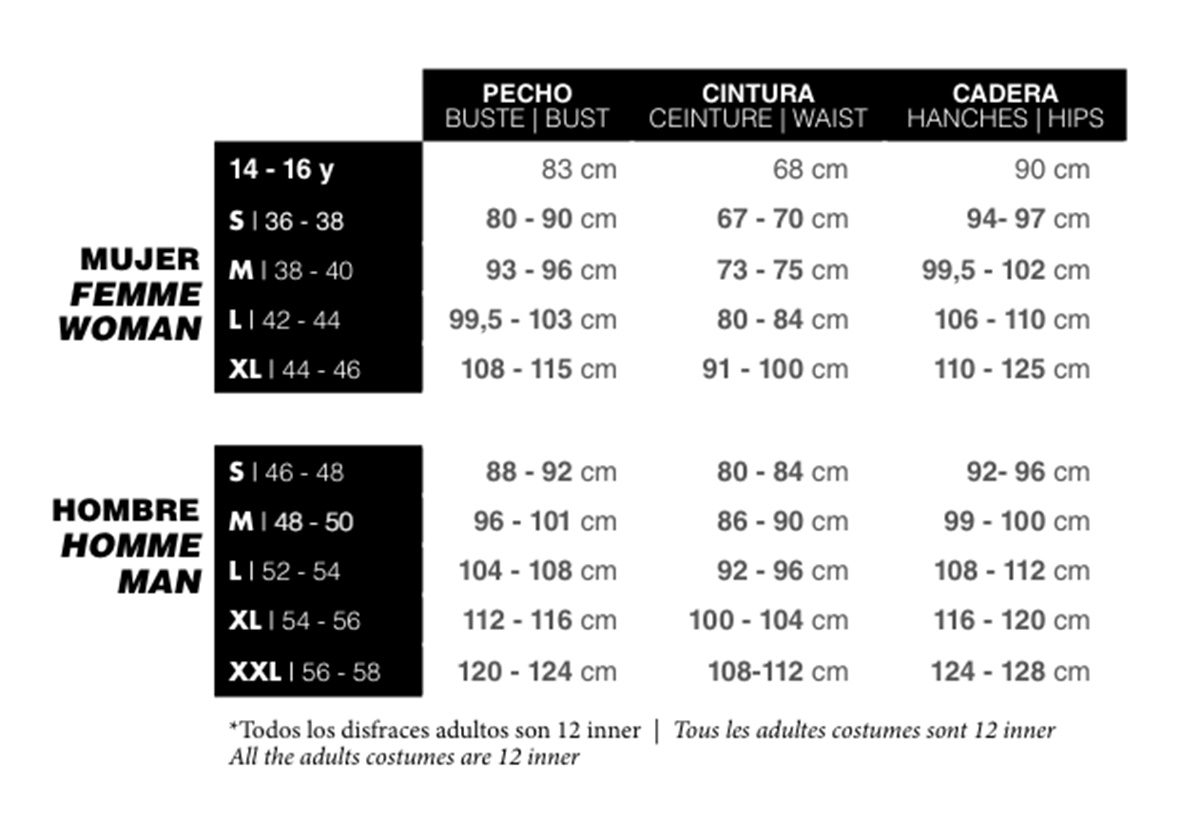Este traje puede combinarse fácilmente con propuestas de disfraces para hombres o integrarse también en disfraces para mujer, ya que su diseño es totalmente unisex.