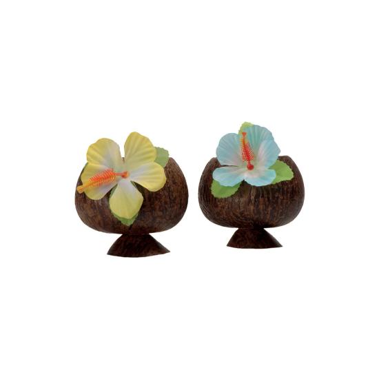Incluye: 1 vaso con forma de coco con flor hawaiana
